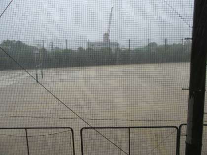 一気の雨で、グラウンドは水浸し。