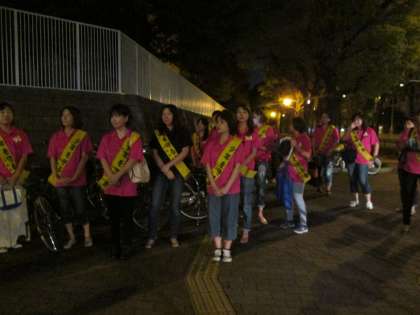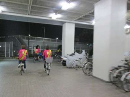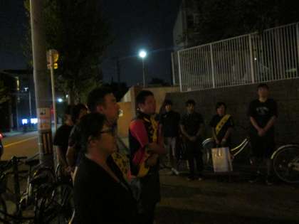 泉尾東地域、北恩加島地域に分かれて、約40分、自転車で声掛け運動を展開します。