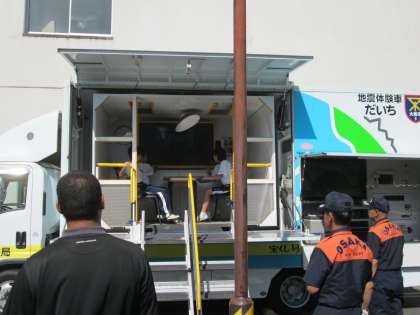 生徒たちは起震車に乗って、この揺れを体験していきます。