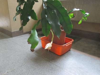 開花間近な「月下美人」も避難します。