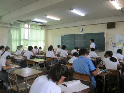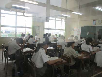 教室で、みんなと一緒に授業を受けています。