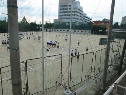 入場行進、校歌斉唱、ラジオ体操。1年にとっては初めての大会。