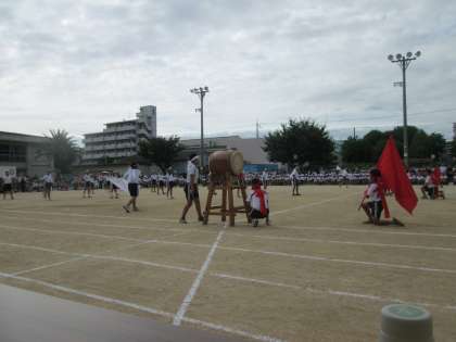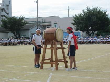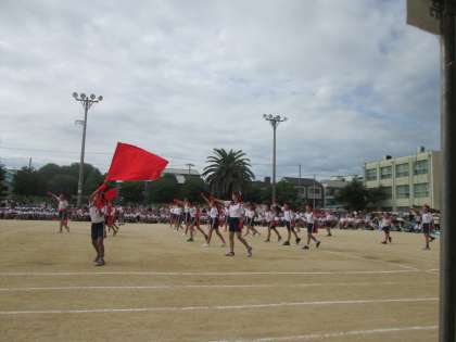 ラジオ体操の後は。恒例の応援合戦!