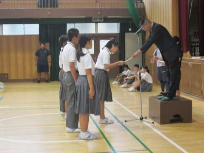 本日、全校集会に先立って、新生徒会役員の認証式を行いました。