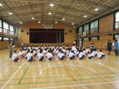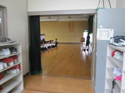 一方、格技室では、3年の体育の時間。集団演技の練習で、声が響いています。