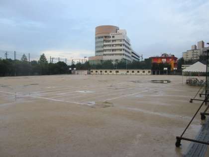 本日、予行練習をと考えましたが、このグランド状態では・・・。