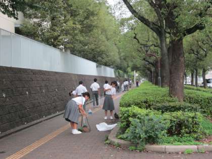 今朝は、バスケットボール部が歩道側溝の掃除を行ってくれました。