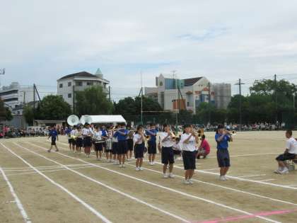 吹奏楽部は、得意のマーチングを披露しながら、美術部は絵をかきながら走りました。