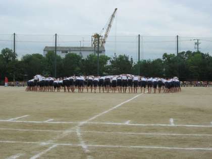 全員が輪になり、気合を入れる掛け声が、グラウンドいっぱいに広がりました。