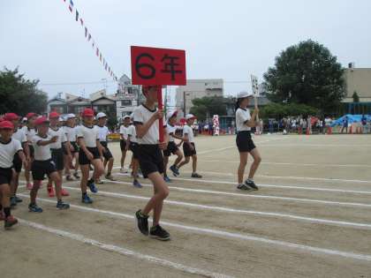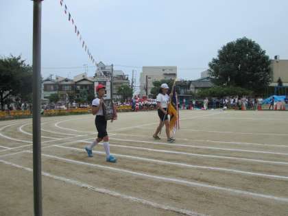 校旗に続いて、優勝旗・準優勝盾、そして、身体の大きな6年から入場します。