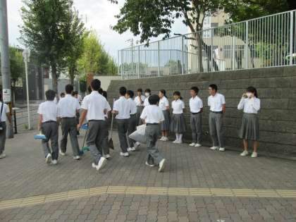 今朝はバスケットボール部が、校舎回りの落葉を掃除してくれました。