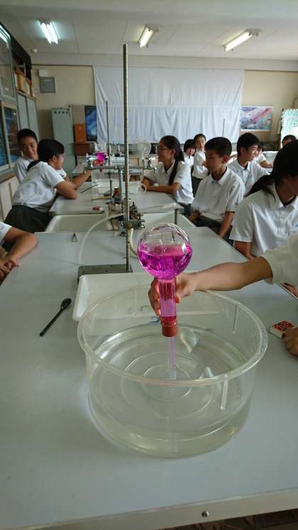 昨日、1年の理科で行われた「アンモニアを集める実験」。