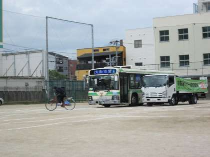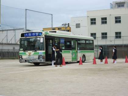 市バスにも死角があり、代表生徒が運転席に乗って確認をしました。
