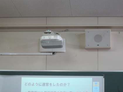本校と違って、旭陽はすでに各教室にプロジェクターや投影スクリーンが整備されていて、授業での実践が報告されました。