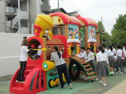 園児さんを抱き上げる生徒も!