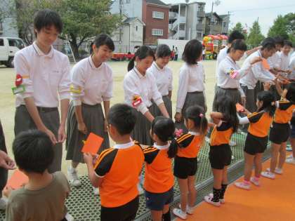 最後は、中学生から、園児さんに、「手作りのカード」をプレゼントしました。