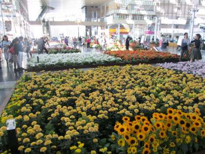 そんな秋の花が、大阪駅構内の「時空の広場」に、数多く展示されていました。