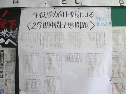 今回の中間テストでも、2年生の生徒学力向上委員会では、予想問題を事前に作成し、取り組んでくれました。