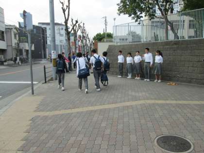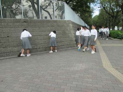 今朝は、吹奏楽部が外回りの落葉をキレイにしてくれました。