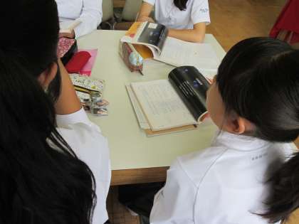 「古典を楽しむ」というテーマで、広い図書室を活用して、竹取物語の学習が行われました。