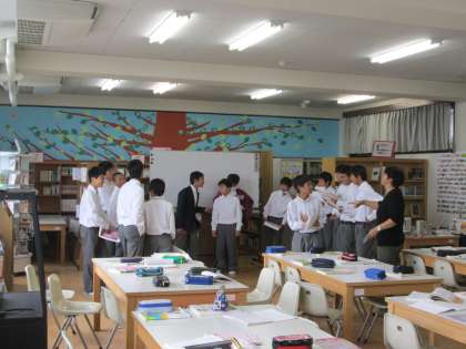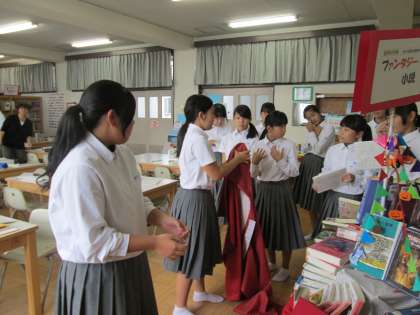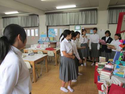 「竹取物語」の暗唱から始まり、男女別に動作をつけて朗読の練習に。