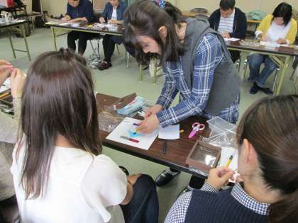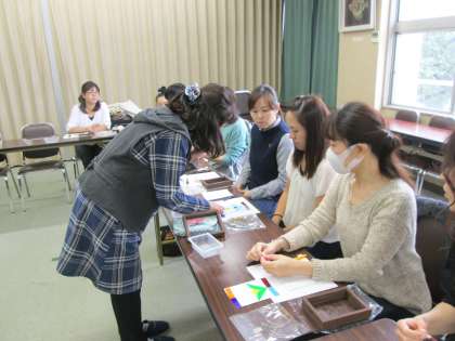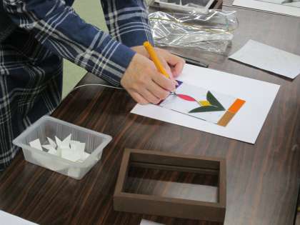 シール状になっている色の用紙を、ていねいにガラス盤に空気が入らないように貼っていきます。