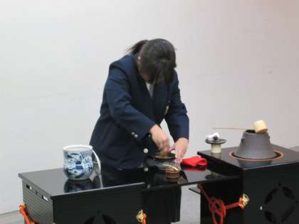 茶道部のお点前。長吉西中学校の腕前です!