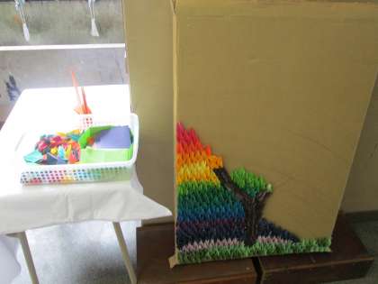 みんなでつくる折鶴で、「素晴らしい絵」が、これから完成に近づいて行きます。