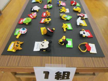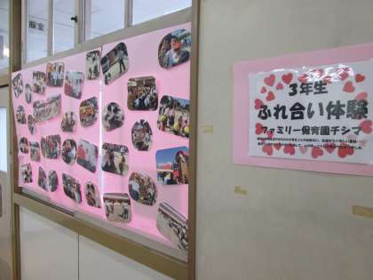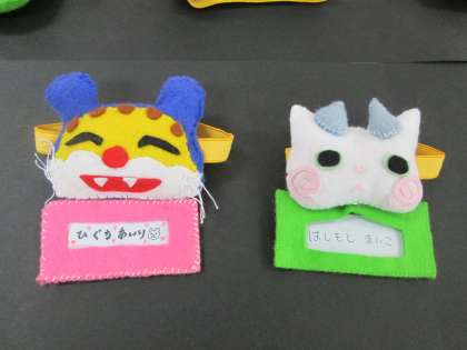 先日行われた、ファミリー保育園で行われた「ふれあい実習」。この取り組みで作ったアームバンドが展示されています。