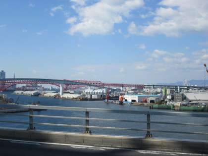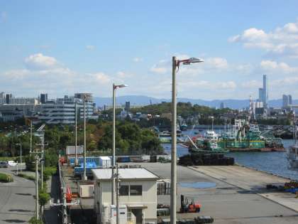 反対側は、内港から大阪港。なみはや大橋と港大橋。天保山の観覧車、六甲連山が見えます。