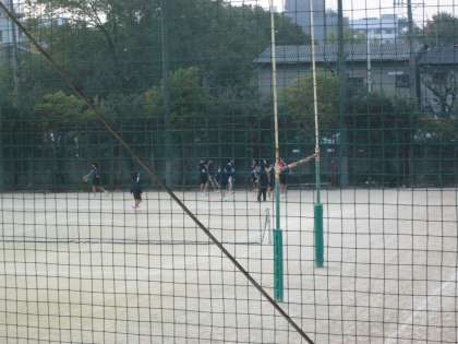 ソフトテニス部は早朝から練習。大正東中で戦います。