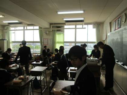本日の給食は、3年が懇談会のため、1・2年のみ。