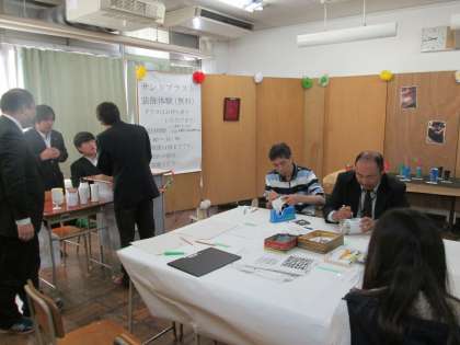 体験コーナーでは、生徒たちだけでなく、先生方もチャレンジです。