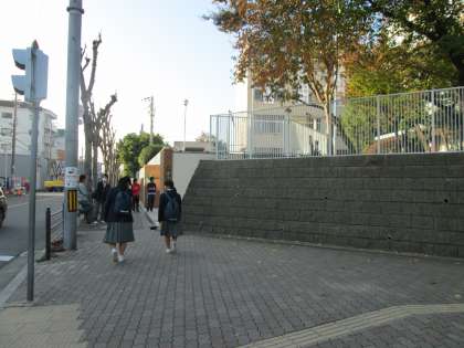 やや車の往来も少なく、生徒たちもゆっくり登校です。