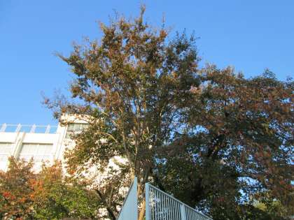正門の桜や百日紅の紅葉も、お天気に映えています。