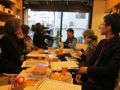 地元ベイコムのカメラ取材も入る中、環境・健康を育む、地産地消の「おおさか材」を知ることができました。