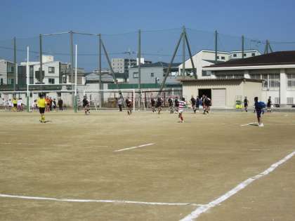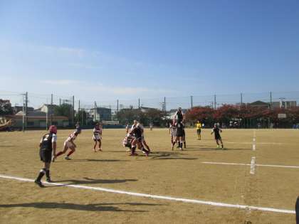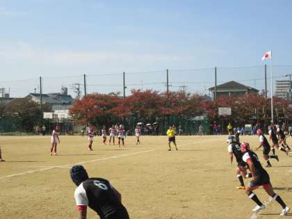 前半は、序盤、堅さからか、ミスが目立ち、相手ボールの時間が多く、東大阪朝鮮中級に先にトライを奪われます。