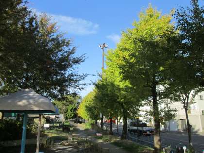 学校の南側。はしけ桟橋のある「臨港緑地」。