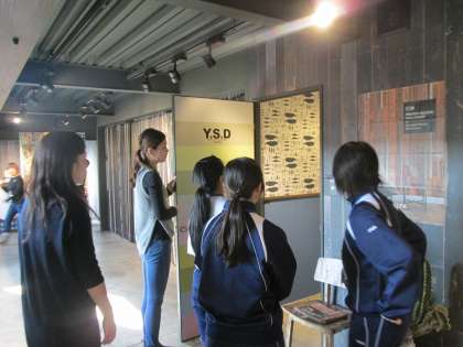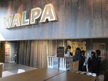 店内の様子を見学。生徒たちはカラフルな壁紙に、うっとりでした。