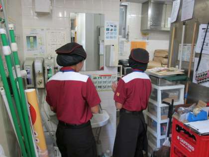 ユニフォームが似合っています。飲食店は、手洗いを欠かせません。