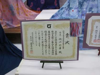 浴衣の染色では、徳島県の賞を受賞されたようで、感激です。