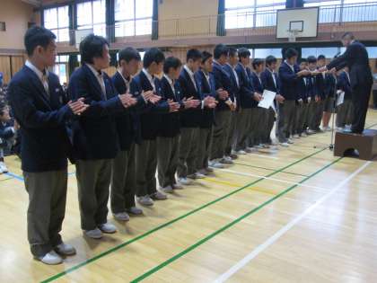 ラグビー部の表彰です。よく頑張りました。