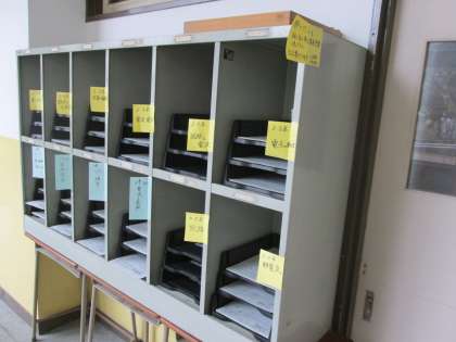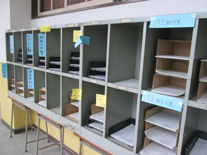 期末テスト前とあって、理科や英語のプリント問題が、分野ごとにどっさり。