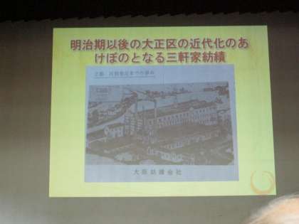 近代化の明治に入り、三軒家に紡績工場が登場します。