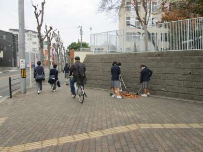 今朝は。吹奏楽部が桜の落葉を掃除してくれました。