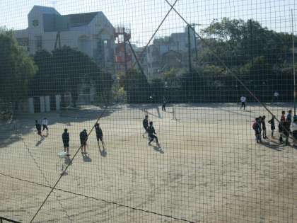 テニスコートでは、硬式テニス部が活動し、フィールドでは、ラグビー部が声を張り上げて練習しています。
