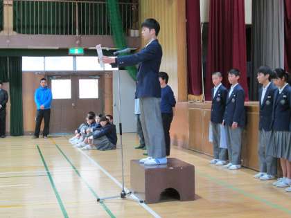 皆さん、おはようございます。テストで一週間とび、久しぶりの集会となりました。