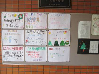 玄関の、12月の目標も、光っています。