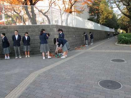 今朝は、吹奏楽部が桜の落葉を集めてくれました。