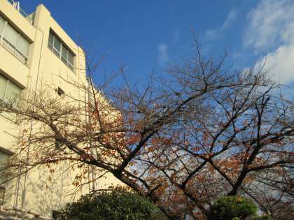 桜の落葉がかなりすすみ、枝が丸裸に近づいて、紅葉も終わりとなりました。